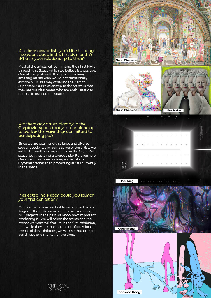 - Are there any artists already in the CryptoArt space that you are planning to work with? Have they committed to participating yet?
